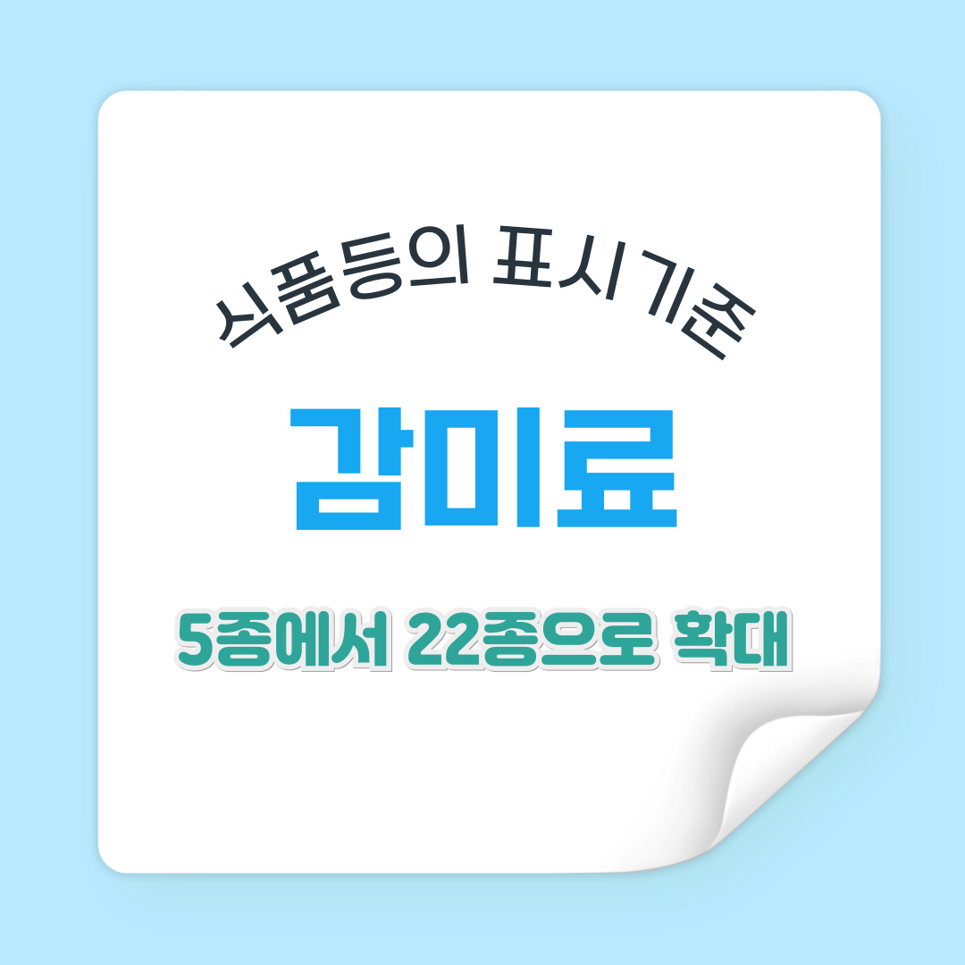 원료의 명칭과 함께 용도(감미료)를 표시하여야 하는 대상이 5종에서 22종으로 크게 늘어남
